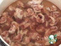 Куриные сердечки замочить на несколько часов в воде. Удалить лишний жир, кровеносные сосуды и сгустки крови. |