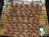 Сердечки насадить на шпажки, смазать растительным маслом, уложить на застеленный фольгой противень. |