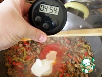 У нас еще 5 минут! Кладем в фарш томатный соус и йогурт, добавляем сахар и соль, хорошо перемешиваем и на среднем огне тушим под крышкой. |