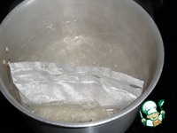 Вынимаем из кастрюли пакетики риса. |