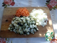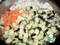 Пока варится рис, нарезаем овощи. (Я использую замороженный кабачок, предварительно его разморозив). |