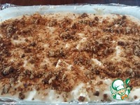 Укрыть все заварным кремом с маскарпоне. Посыпать орешками. |