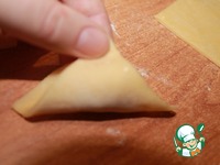 Лепим "ушки". Сначала тесто раскатываем в тонкий пласт и режем на квадраты. |