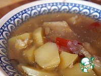 Через 5 минут влить водку, варить еще 5 минут, положить лавровый лист, снять суп с огня, накрыть крышкой и дать настояться. Приятного аппетита! |