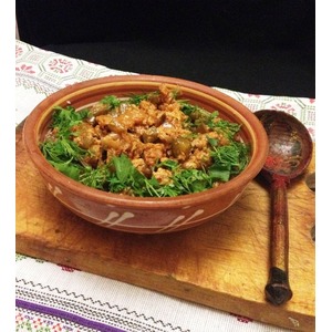 В миску выложить гречу, сверху- полученное рагу. Посыпать рубленой зеленью. Приятного аппетита! |