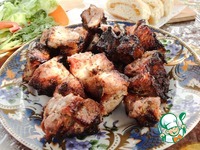 Когда подойдёт время для жарки, мясо вынуть из маринада, излишки стряхнуть, наколоть на шампуры и жарить до готовности, время от времени переворачивая. |