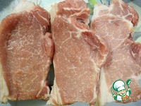 Нарезаем корейку на порционные кусочки. Вот такие три кусочка получились. |