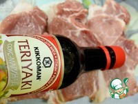 Смазываем корейку соевым соусом Терияки и хорошенько его втираем. |