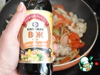Наливаем соевый соус, у меня соус для жарки BOK Kikkoman. |