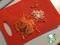 На терке натираем морковку и нарезаем чеснок |