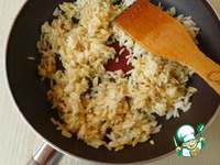 Вытаскиваем индейку и отправляем на сковороду рис. Перемешиваем, отключаем и подаем))) |