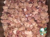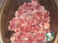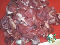 Нарезаем баранину, размер кусочков как на гуляш, примерно с грецкий орех. |