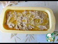 Выкладываем тесто в форму. Сверху выливаем 2 столовых ложки растопленного сливочного масла |