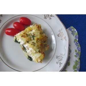 Описание: Воскресенье. Смотрю телепередачу "Барышня и кулинар". Барышня готовит запеканку с рыбой горячего копчения. Интересно. Тут вспоминаю, что в холодильнике скучает кусок зубатки горячего копчения. Почему бы не приготовить запеканку к обеду? Быстро метнулась в магазин за свежим шпинатом и приготовила. После приготовления поняла, что на мой вкус запеканка нуждается в некотором усовершенствовании. Предлагаю вам немного измененный рецепт вкусной и нехлопотной рыбной запеканки.