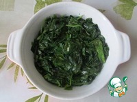 Чеснок мелко порубим. На сливочном масле с чесноком обжариваем листья шпината или тонко нарезанную свежую капусту минут 10, помешивая. |