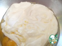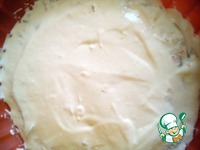 Добавляем муку и разрыхлитель. Тесто должно получиться как на оладьи. |