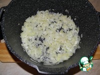 В кастрюле с толстым дном обжарить нарезанный лук до прозрачности, добавить чеснок и обжарить еще минуту |