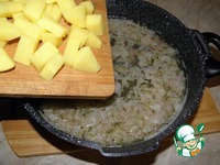 Всыпать картофель, добавить специи, накрыть крышкой варить на маленьком огне до полу готовности картофеля. |
