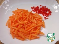 Морковь - соломкой, перец чили - мелкими кубиками. |