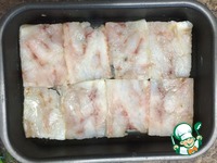 Форму для запекания немного смазать растительным маслом, уложить филе. Для более быстрого приготовления, я разрезала филе вдоль, чтобы кусочки получились тоньше. |