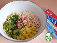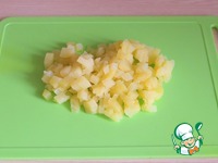 Картофель отварить в подсоленной воде, порезать мелкими кубиками. |