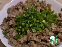 Затем грибы перемешаем с мелко нарезанным зеленым луком и белым вином. |