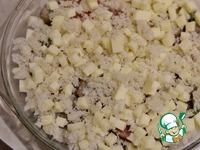 Пока закипает вода для риса, подготовим наши продукты и разогреем духовку до 220 град. Нарежем грибы, перемешаем с солью, мелко нарезанным чесноком и приправой. |