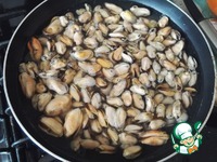 Теперь "собираем" жюльен. В кокотницы выкладываем мидии, примерно до половины. |