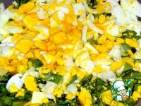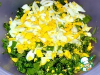 Нарезала её и яйца. |