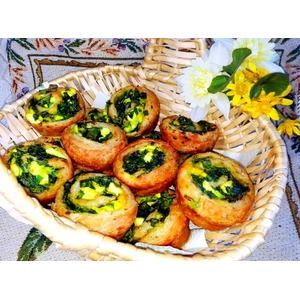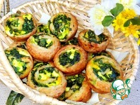 Рулет нарезала ножом на кольца и разложила их в смазанные ячейки формы для выпекания кексов. Выпекала 25 минут при t 180 градусов. |