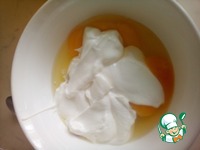 В форму выкладываем половину теста и добавляем вишню. Выкладываем оставшуюся часть теста, разравниваем. |