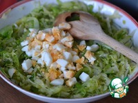 1 яйцо сварить вкрутую. Остудить. Нарезать и добавить к капусте. Перемешать. |