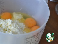 Взбить миксером 3 яйца и творог. Добавить оставшуюся соль. |