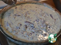 Вынимаем корж из духовки и освобождаем его от бумаги и фасоли. Сразу же аккуратно на корж выливаем начинку. |