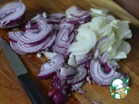 Начинка. Лук репчатый и красный нарезать на тонкие полукольца. |