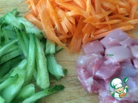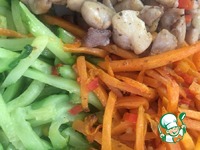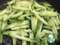 Описание: Вариация на тему знаменитого китайского салата "Тройка". С ярким, запоминающимся вкусом, непередаваемым ароматом, с хрустящей ноткой жареного огурца. Есть этот салат можно как в тёплом, так и в холодном виде. Прекрасная альтернатива полноценному горячему блюду, если дополнить его рисом или пшёнкой. Очень вкусное, запоминающееся блюдо готовится в считанные минуты. Попробуйте, может быть и Вы станете поклонниками этого салата. Приятного аппетита!