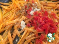 На тарелку положить золотое пшено, рядом тёплый салат "Тройка". Очень вкусно и ароматно, приятного аппетита! |