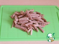 Мясо (говядина) отварить в подсоленной воде. Порезать тонкими брусочками |