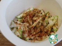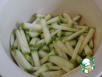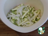 Кабачок нарезать на свой вкус; я кожицу не снимала, т. к. кабачок молоденький. |