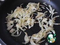 Лук нарежем и обжарим на оставшемся оливковом масле. |
