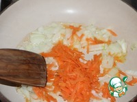 На разогретом растительном масле пару минут потомить рубленый репчатый лук и натертую на крупной терке морковь. Добавить в кастрюлю с будущей похлебкой. |