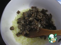Буквально через минуту добавим грибы, потушим все вместе 2-3 минуты, до выпаривания лишней жидкости с грибов |