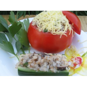 Описание: У нас сейчас посевная в самом разгаре), на улице днем доходит до +35!!! И горячую пищу вечером или днем совсем не хочется, да и готовить особенно уже и некогда, или просто нет сил на долгую готовку. Предлагаю вам легкий, но в то же время сытный ужин или обед, а также эти помидоры могут выступить в качестве гарнира.