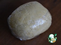 Добавить желток и воду. Замесить тесто. Завернуть в пленку и оставить в холодильник на 30 минут. |