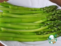 Отварить спаржу в кипящей воде 5 минут. Слить воду. Ополоснуть сразу же холодной водой, чтобы сохранился зеленый цвет спаржи. |