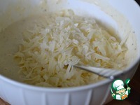 В миске смешать картофельное пюре, яйца, соль, тимьян, сметану и сливки. Перемешать. Добавить тертый сыр. Перемешать |