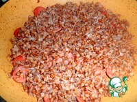 Сразу выкладываем гречку, из пакетика, разравниваем. |
