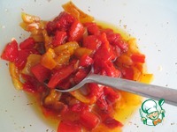 Пока готовятся перцы, приготовить для них заправку. Смешать оливковое масло (2 ст. л.), винный уксус (1ч. л.), тимьян (1 ч. л.), мелко измельченный ножом чеснок (1 зубчик), соль, перец. |