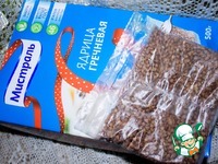 Пакетик гречки Ядрица, ТМ Мистраль закидываем в кипящую воду, солим и варим до готовности 20 минут. |