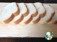 Батон нарезать на ломтики высотой 1-1,5 см. |